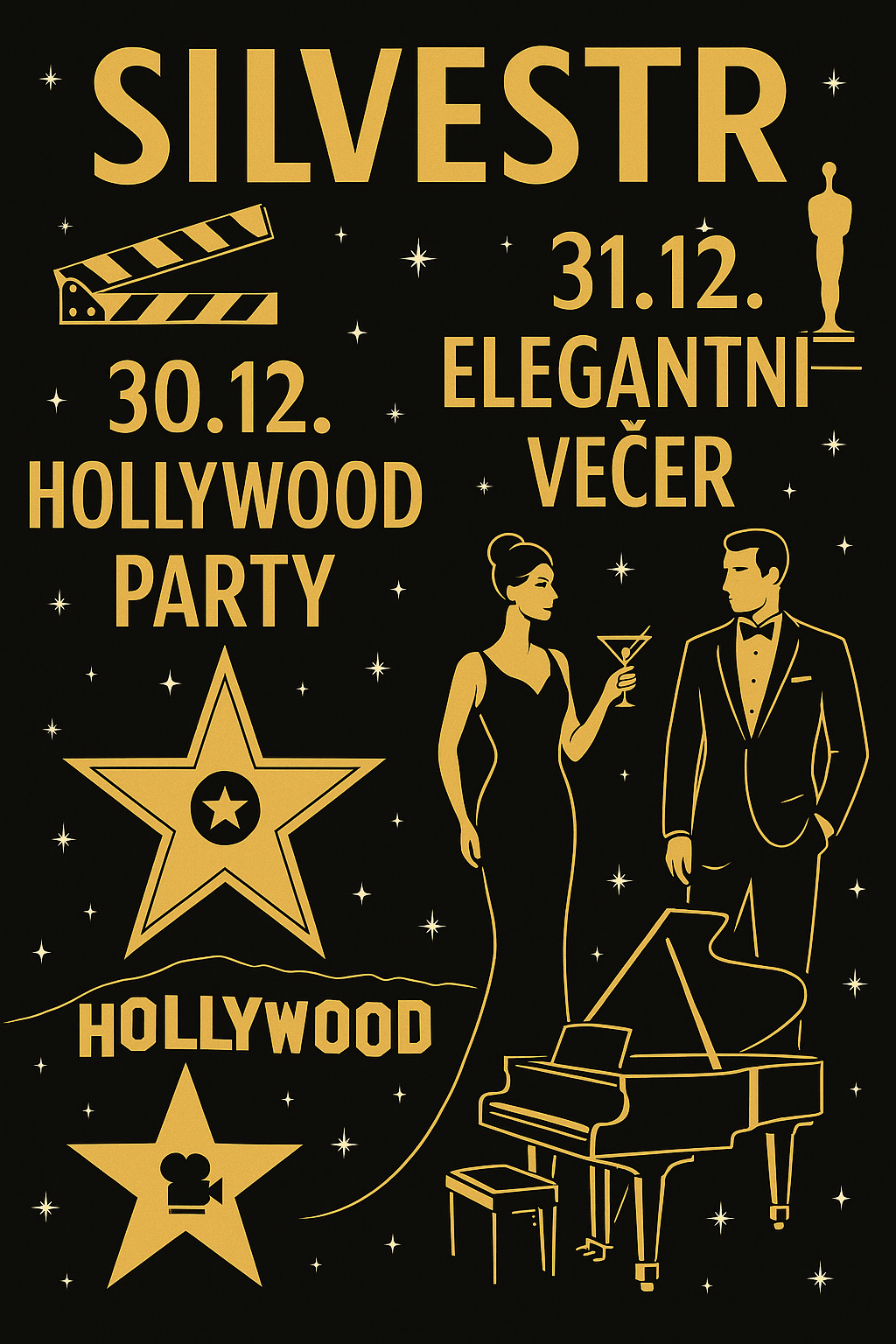 - večer maškarní ve stylu Hollywood a jeho výtvory (můžete se převléknout za Vaše oblíbené herce , nebo postavy z Holywoodských filmů a pohádek) , bude znovu soutěž o nejoriginálnější masku , tak se prosím snažte ať si to hezky užijeme - maska je povinná!!! :)